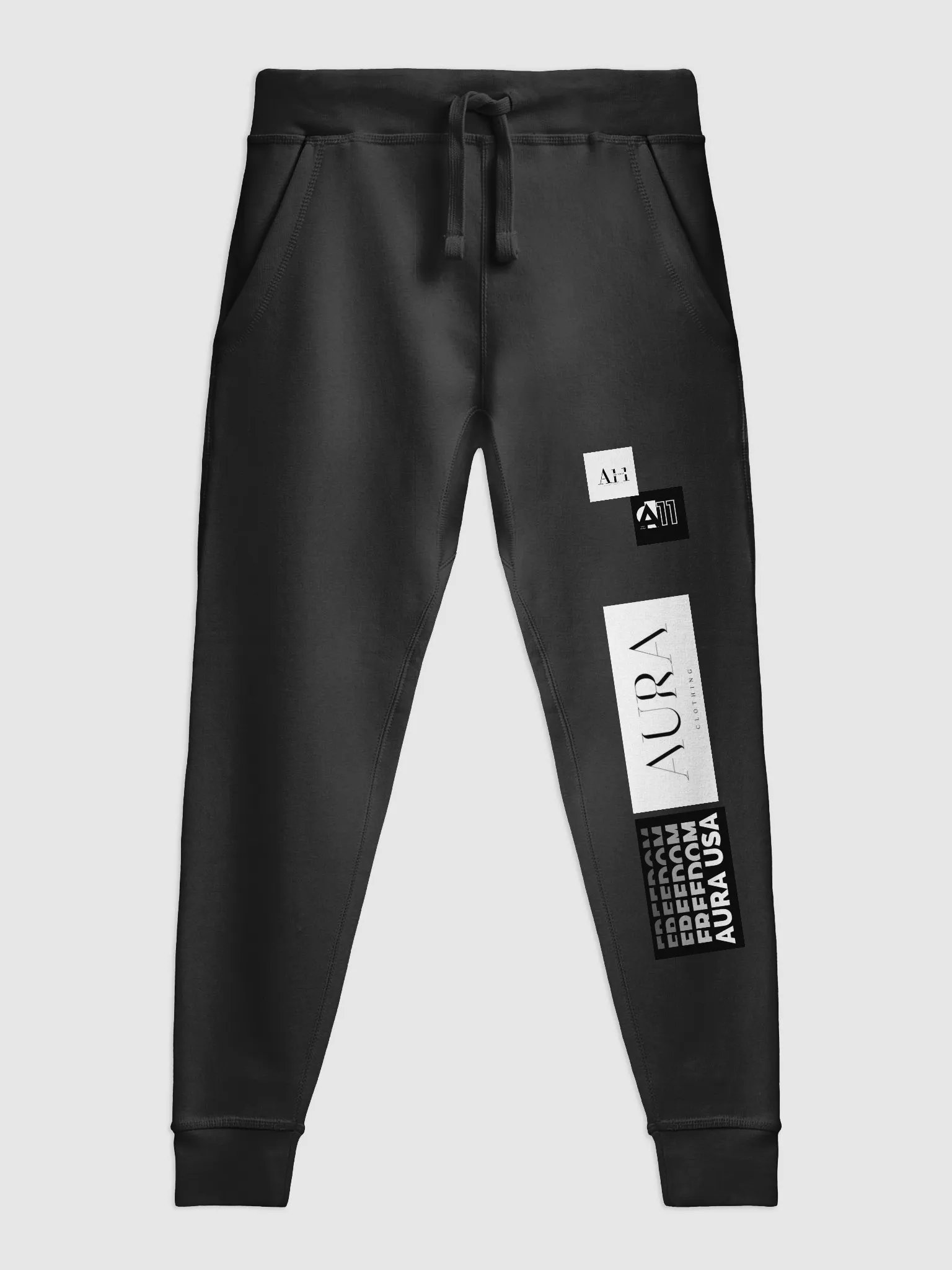 Embrace freedom and style with our AURA A11 joggers featuring a sleek design with a bold 'FREEDOM' print. Made with premium midweight fabric, these joggers offer a comfortable, true-to-size fit. Elevate your streetwear game with AURA's signature style.