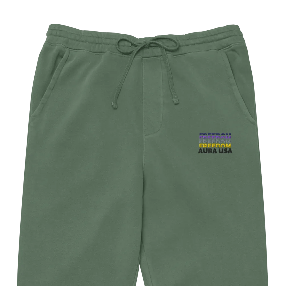 Express your individuality in comfort with these pigment-dyed joggers. Made from a soft cotton/polyester blend fleece, the relaxed fit and unique color options make them perfect for lounging or stepping out in style. Unisex sizing available. Join the AURA movement today!